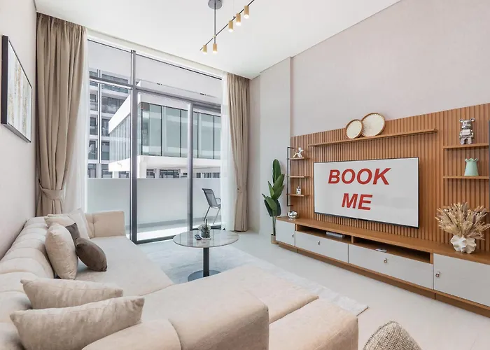 The 83 m² Stayshort - Jvc Apartment Sleeps 4 With Pool And Gym Dubai is located 4.8 km from Jumeirah Golf Estates and approximately a 20-minute walk from the Dubai International Stadium. At this 2-bedroom apartment, Wi-Fi and parking are also provided.